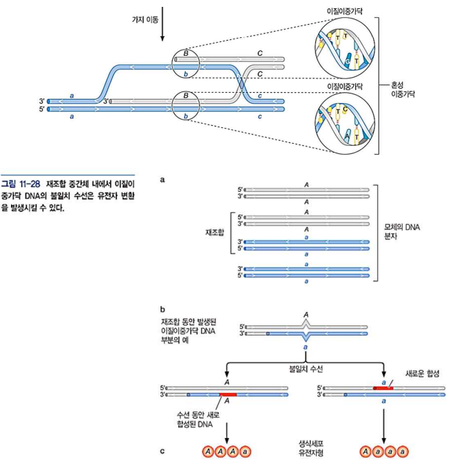 - 이질 이중가닥을 형성하여 염기서열 차이를 지니면 염기서열 불일치