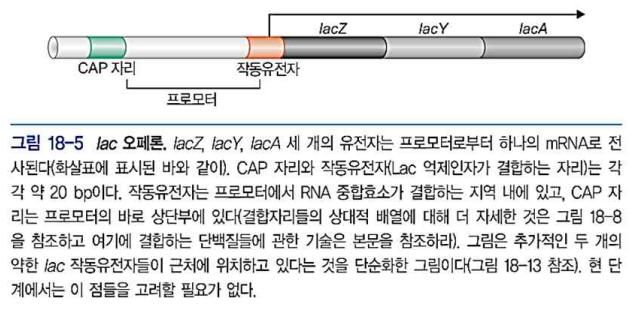 - lac Z의 5‘에 위치한 lac 프로모터는 3개 유전자를 하나의 mRNA로 전사한다.