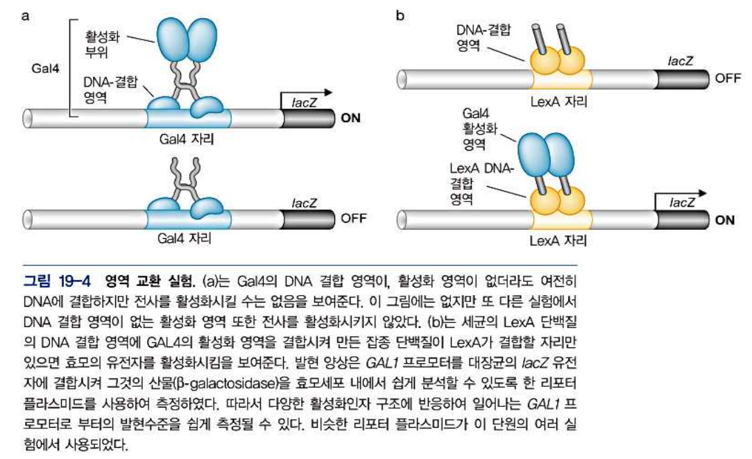 - 활성인자의 DNA 결합영역과 활성화영역은 서로 격리되어 있다.