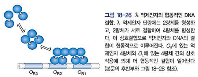 ② 여러 활성인자들이 서로 도와서 발생가능 (협동적) ex. OR1-OR2 에 λ억제인자 결합